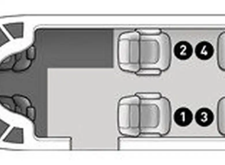 Phenom 100E D-IDAS accommodates up to 4 passengers. The baggage compartment volume of 1.75 m³ can hold up to 5 large suitcases . The maximum flight range reaches 2148 km, depending on payload and weather conditions.