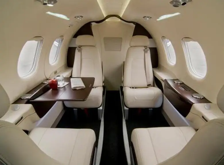 Phenom 100E N131BV accommodates up to 5 passengers. The baggage compartment volume of 1.75 m³ can hold up to 5 large suitcases . The maximum flight range reaches 2148 km, depending on payload and weather conditions.