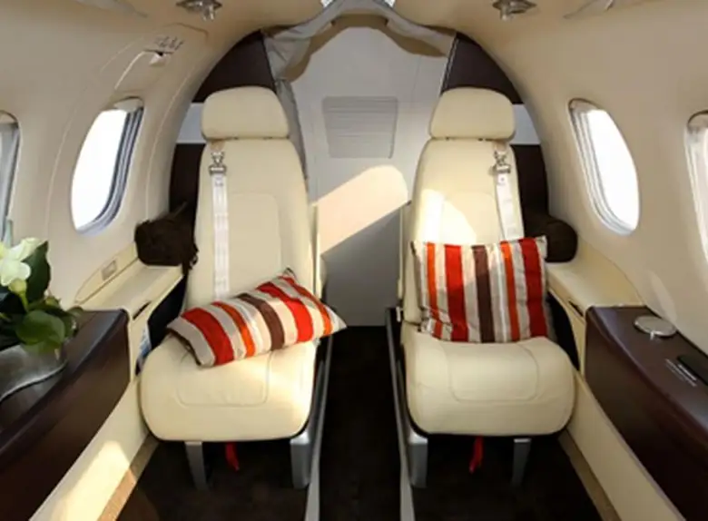 Phenom 100E N226KV accommodates up to 4 passengers. The baggage compartment volume of 1.75 m³ can hold up to 5 large suitcases . The maximum flight range reaches 2148 km, depending on payload and weather conditions.