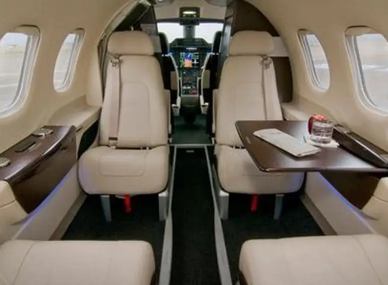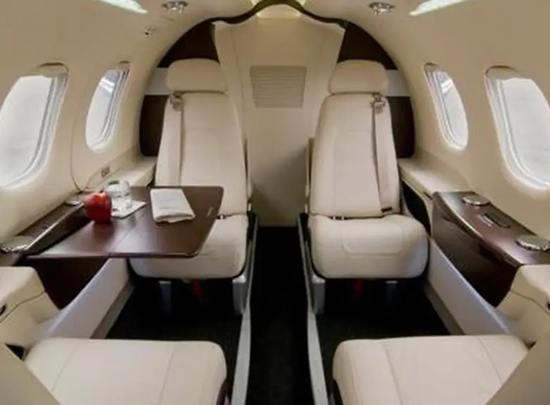 Phenom 100E N450JF accommodates up to 4 passengers. The baggage compartment volume of 1.75 m³ can hold up to 5 large suitcases . The maximum flight range reaches 2148 km, depending on payload and weather conditions.