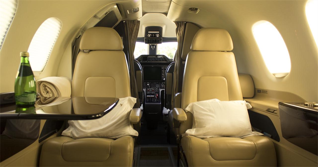 Phenom 100E XA-ATJ accommodates up to 5 passengers. The baggage compartment volume of 1.75 m³ can hold up to 5 large suitcases . The maximum flight range reaches 2148 km, depending on payload and weather conditions.