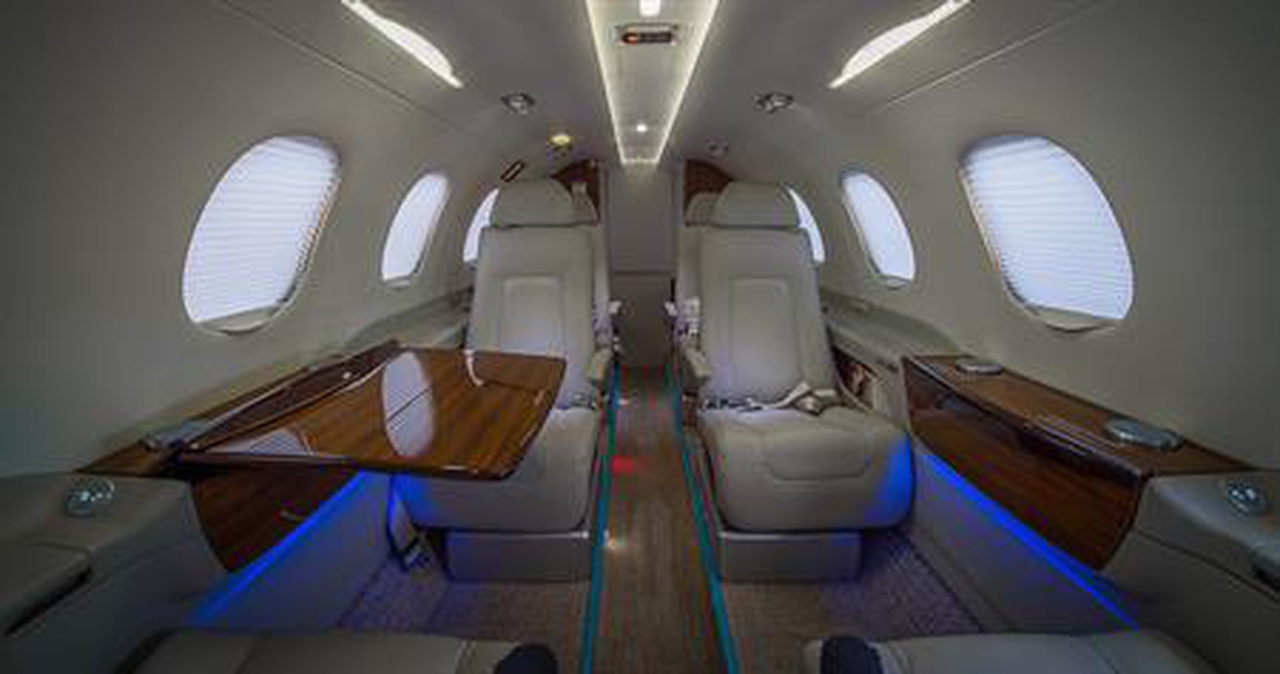 Phenom 300 5N-BVG accommodates up to 7 passengers. The baggage compartment volume of 2.15 m³ can hold up to 6 large suitcases . The maximum flight range reaches 3334 km, depending on payload and weather conditions.