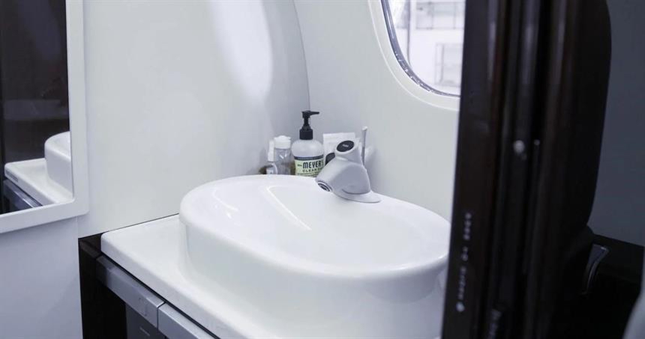 Available onboard amenities include Enclosed lavatory , Ice bin , Lavatory , Lavatory sink .