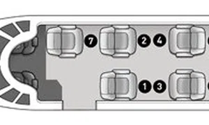 Available onboard amenities include Coffee pot , Enclosed lavatory , Lavatory , Leather seats .