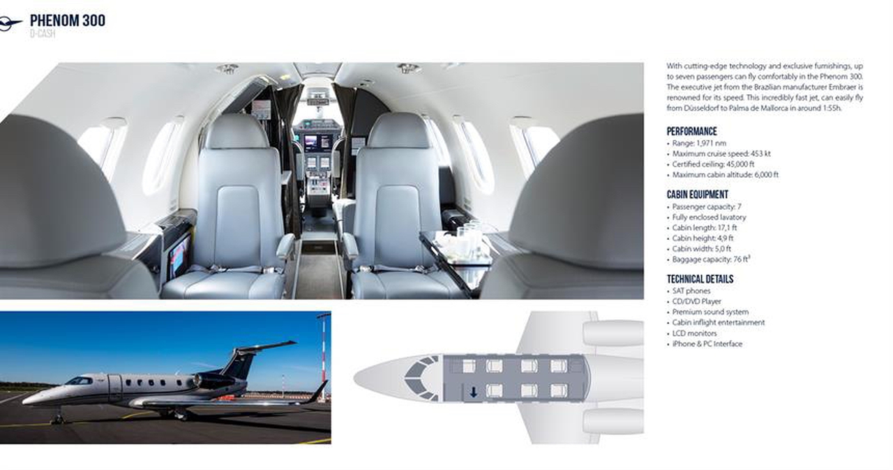 Embraer Phenom 300 (D-CASH, Vista) Private Jet Charter — Price, Specs & Worldwide Flights