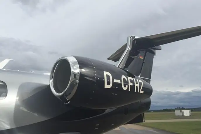 Phenom 300 D-CFHZ accommodates up to 8 passengers. The baggage compartment volume of 2.15 m³ can hold up to 6 large suitcases . The maximum flight range reaches 3334 km, depending on payload and weather conditions.