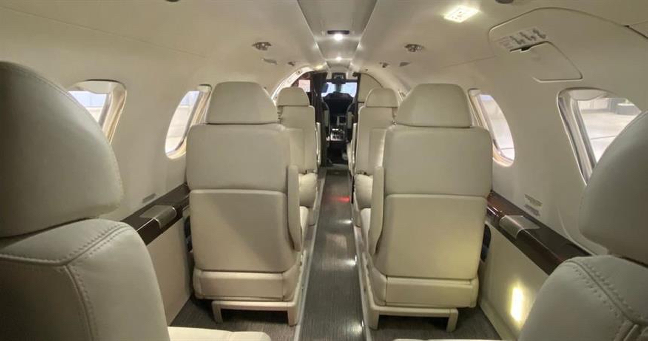 Phenom 300 D-CHMD accommodates up to 7 passengers. The baggage compartment volume of 2.15 m³ can hold up to 6 large suitcases . The maximum flight range reaches 3334 km, depending on payload and weather conditions.