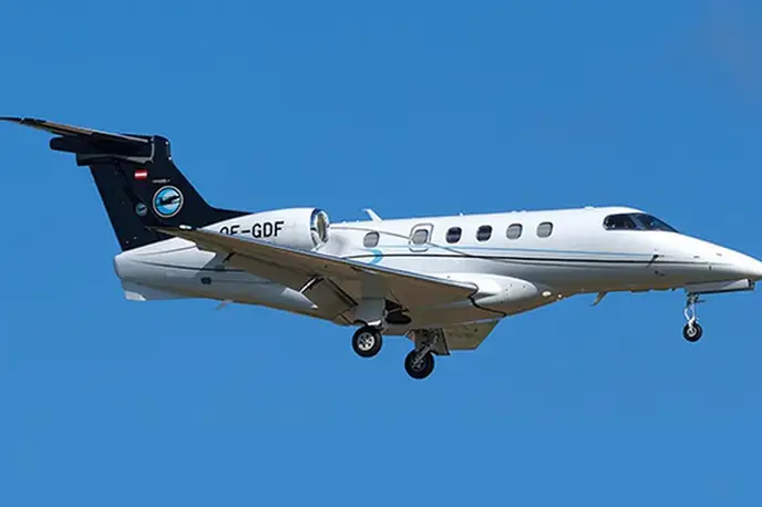 Embraer Phenom 300 OE-GDF (SPARFELL Luftfahrt GmbH), M. R. Štefánik Airport is premium Super Light Jet jet for 8 passengers with a range of 3334 km. verified aircraft, transparent pricing, real photos and signature JETVIP ratings. Model ratings: Reliability — 87/100, Comfort — 78/100, Popularity — 4.8/5.