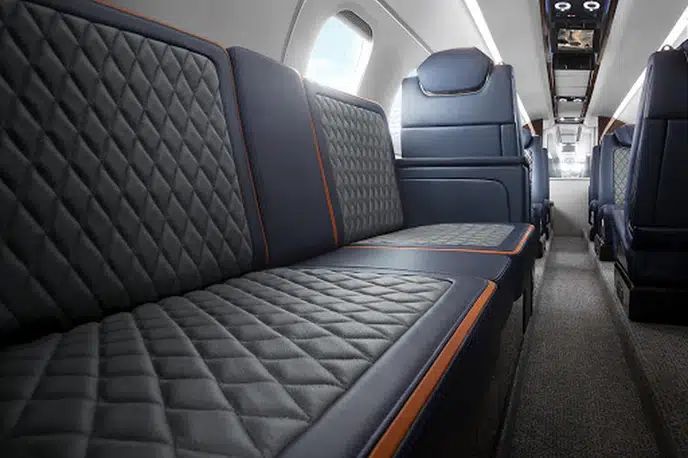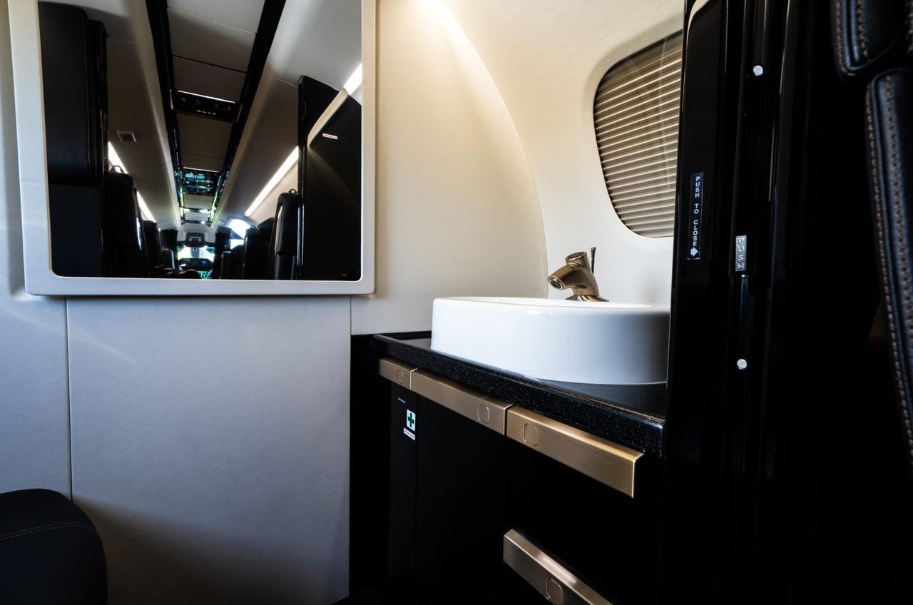 The Phenom 300E cabin offers spacious accommodation with a ceiling height of 5 feet (1.5 meters), ensuring comfortable movement inside the aircraft. The interior was developed in collaboration with BMW Designworks, guaranteeing not only aesthetic pleasure but also the functionality of every detail.