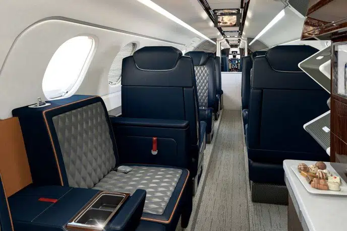 The climate control system maintains optimal temperature and humidity, while the low noise level (only 70 dB) allows passengers to communicate comfortably or work during the flight. Larger windows provide natural lighting and excellent views.
