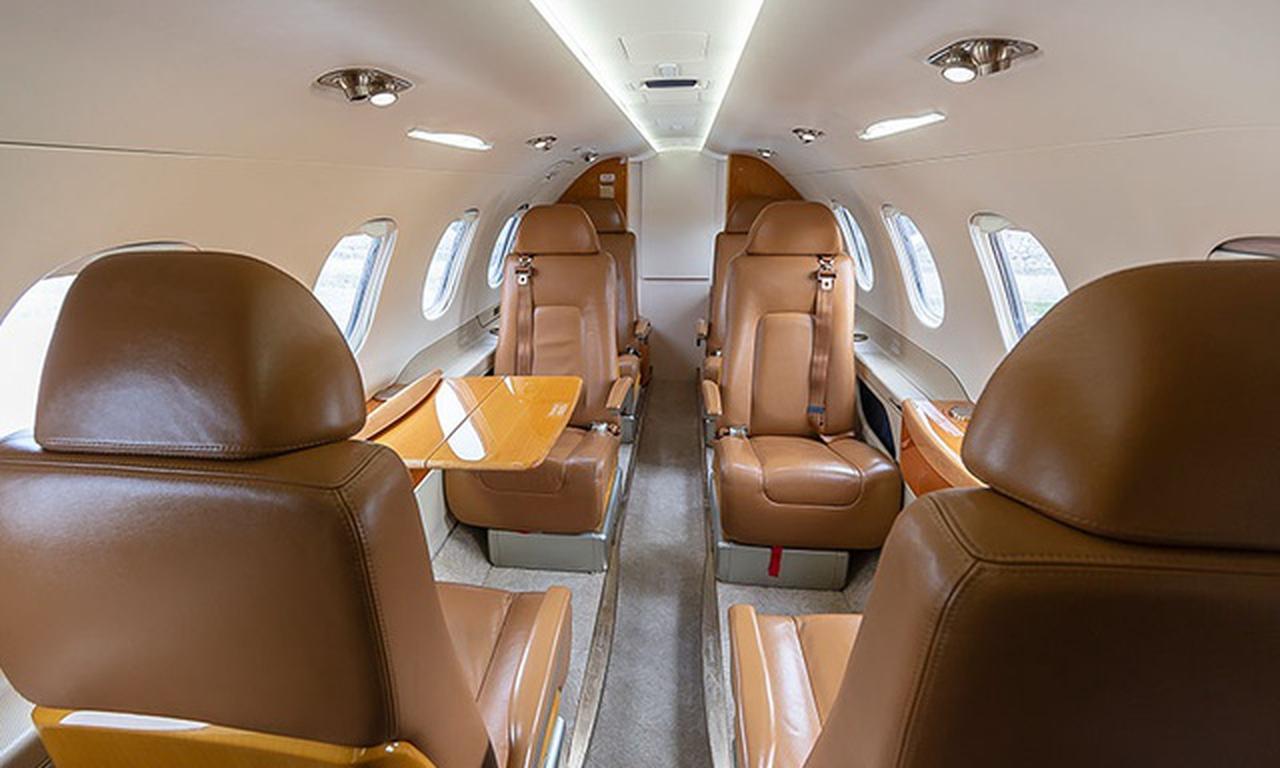 Phenom 300E CS-LPA accommodates up to 7 passengers. The baggage compartment volume of 2.15 m³ can hold up to 6 large suitcases . The maximum flight range reaches 3650 km, depending on payload and weather conditions.