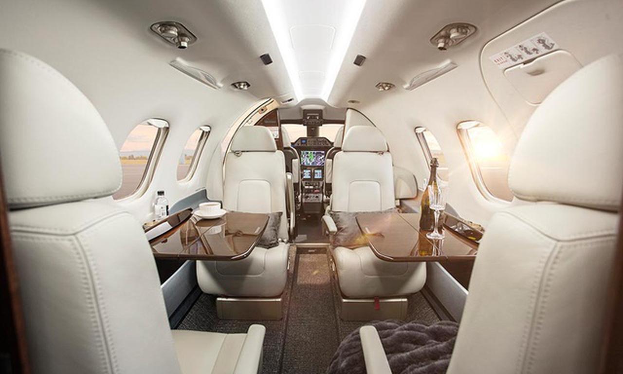 Phenom 300E VH-NJR accommodates up to 10 passengers. The baggage compartment volume of 2.15 m³ can hold up to 6 large suitcases . The maximum flight range reaches 3650 km, depending on payload and weather conditions.