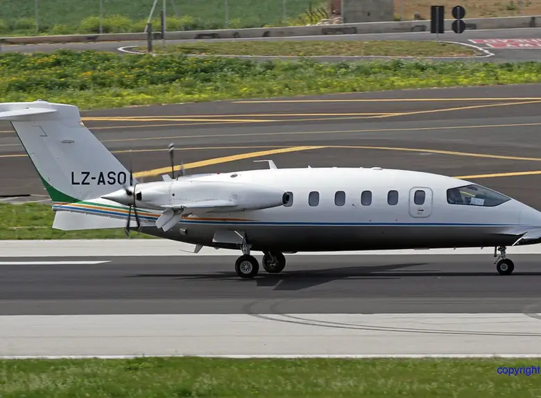 Piaggio Avanti II LZ-ASO accommodates up to 7 passengers. The baggage compartment volume of 1.3 m³ can hold up to 3 large suitcases . The maximum flight range reaches 2791 km, depending on payload and weather conditions.
