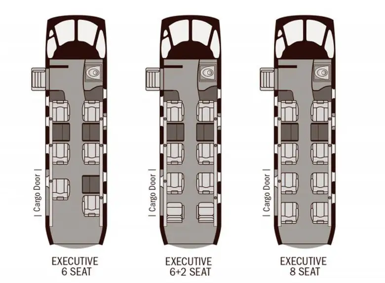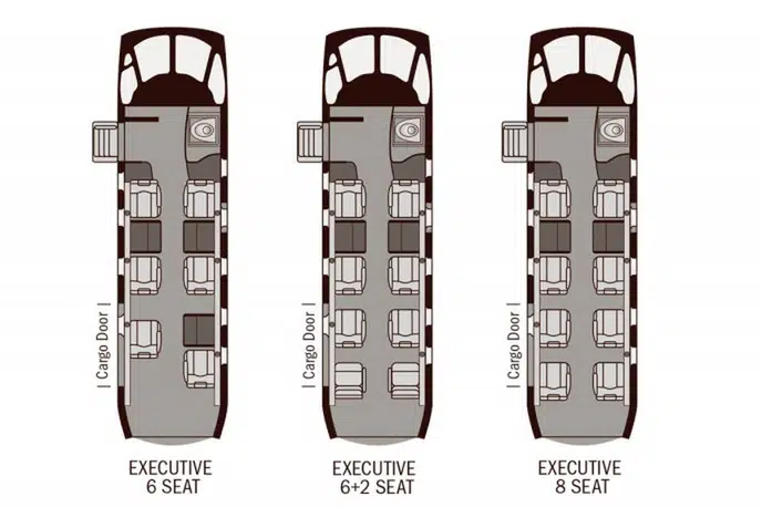 - Flexible configurations to accommodate up to 8 passengers in an executive layout and up to 10 in a commuter configuration.