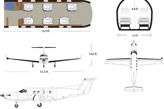 The Pilatus PC-12 NGX offers a spacious cabin for its class: