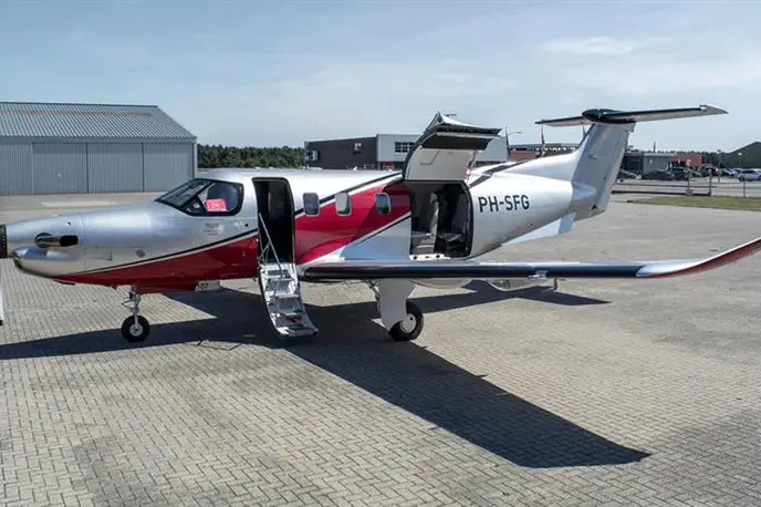 Pilatus PC12 NGX PH-SFG accommodates up to 8 passengers. The baggage compartment volume of 1.13 m³ can hold up to 3 large suitcases . The maximum flight range reaches 2804 km, depending on payload and weather conditions.
