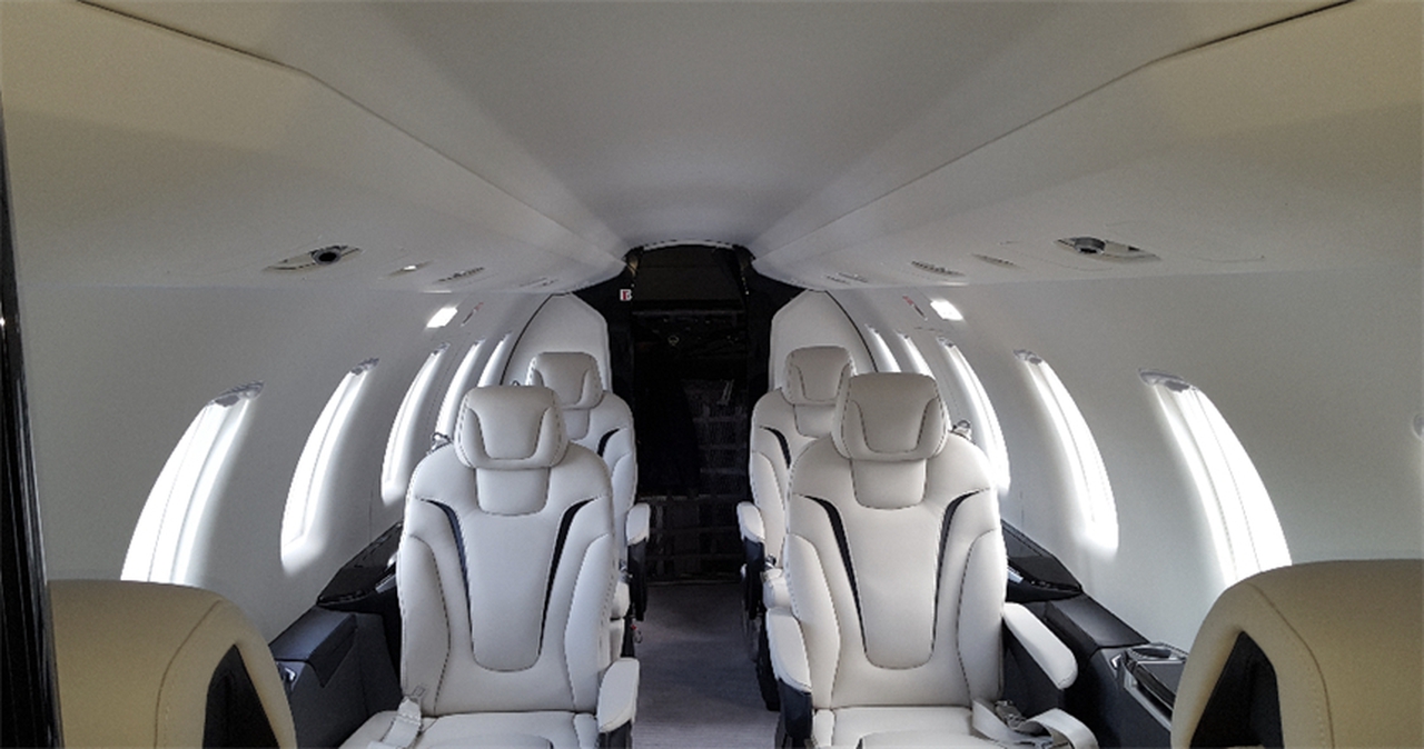 Pilatus PC-24 D-CVAA accommodates up to 8 passengers. The baggage compartment volume of 2.5 m³ can hold up to 7 large suitcases . The maximum flight range reaches 3303 km, depending on payload and weather conditions.