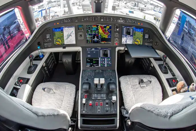 - Integrated Flight Management System (FMS) for optimized route planning, fuel efficiency, and precise navigation.