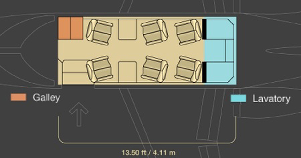 Premier 1 N415HD accommodates up to 6 passengers. The baggage compartment volume of 2.2 m³ can hold up to 6 large suitcases . The maximum flight range reaches 2434 km, depending on payload and weather conditions.