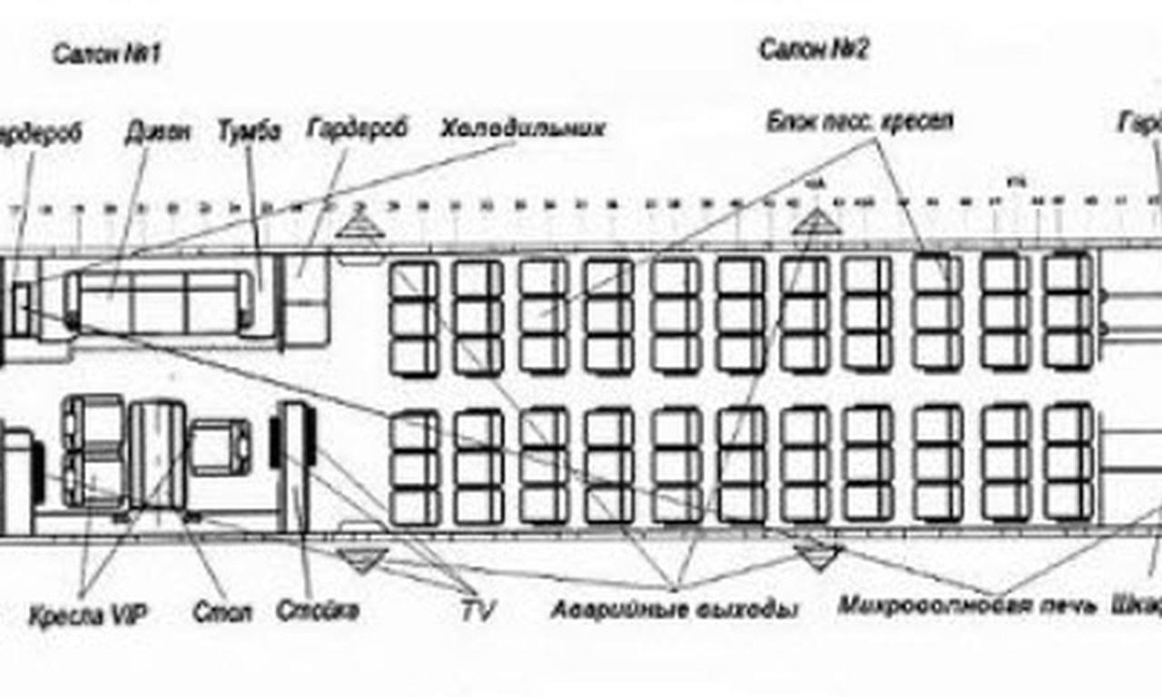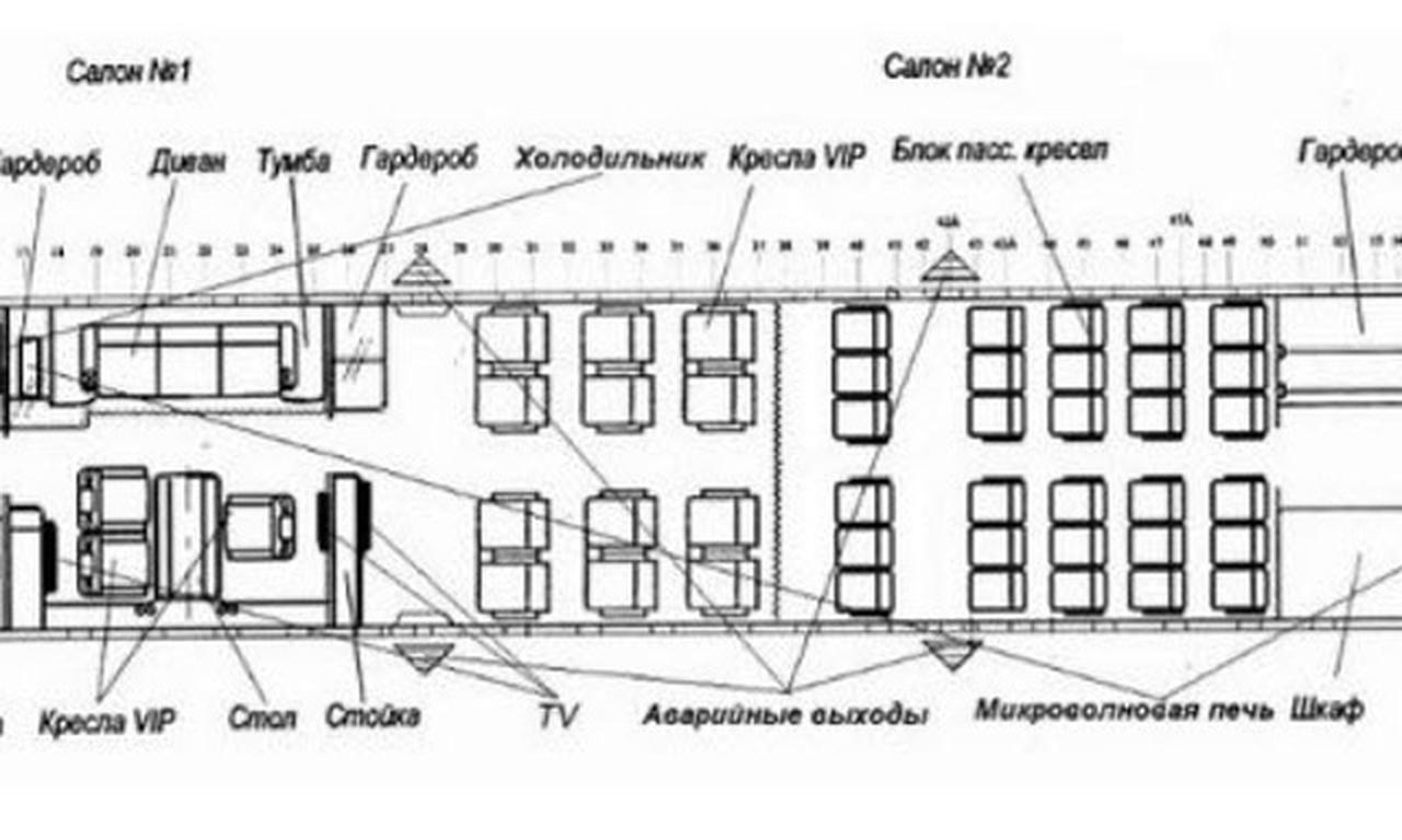 YAK-42D VIP RA-42445 accommodates up to 72 passengers. The baggage compartment volume of 22.0 m³ can hold up to 65 large suitcases . The maximum flight range reaches 4000 km, depending on payload and weather conditions.